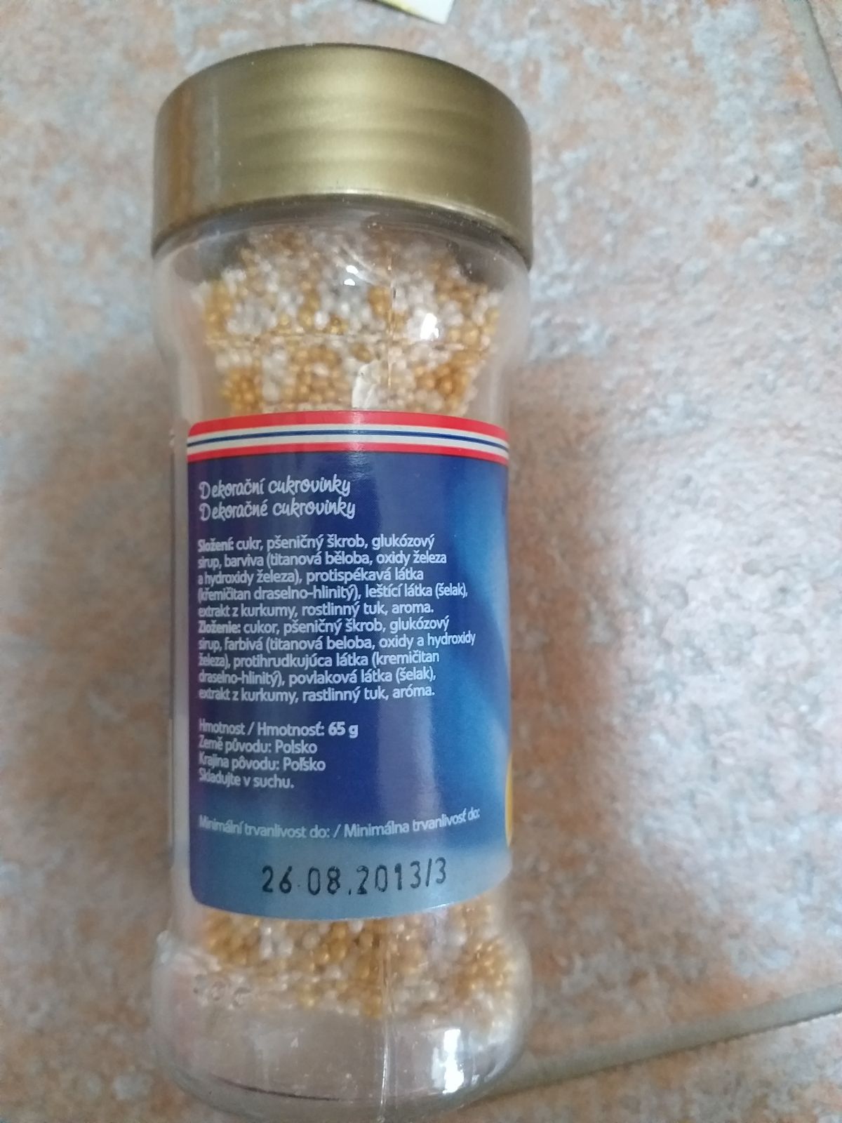 Zlaté a bílé dekor. kuličky Dr. Oetker- po min. trvanlivosti