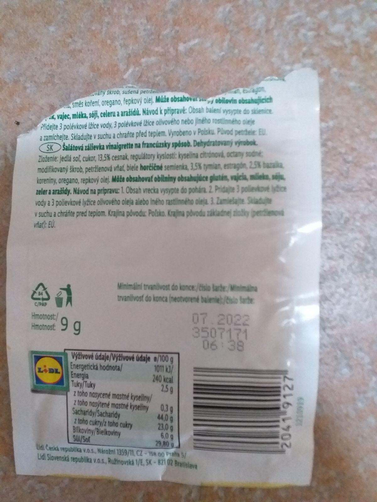 Salátová zálivka francouzská - po minimální trvanlivosti