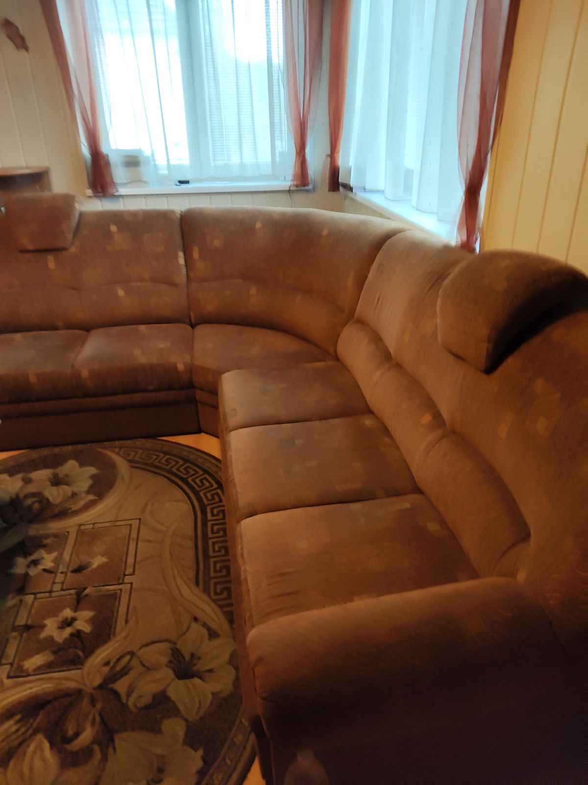 Daruji za odvoz rohovou sedací soupravu rozkládací. Výška sedací soupravy je 97 cm, výška sedu 55 cm, výška od země 40 cm. Délka menší strany je 230, délka delší strany je 270. Spací prostor 140/180. Sedací souprava je zachovalá vzhledem k pravidelnému čištění. V případě zájmu podám více informací