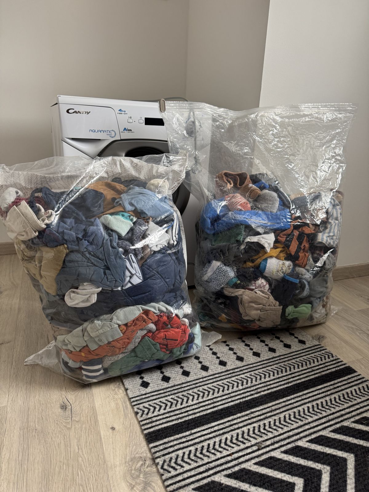 Daruji za odvoz dva pytle dětského oblečení pro kluky, velikosti 74, 80, 86, 92.