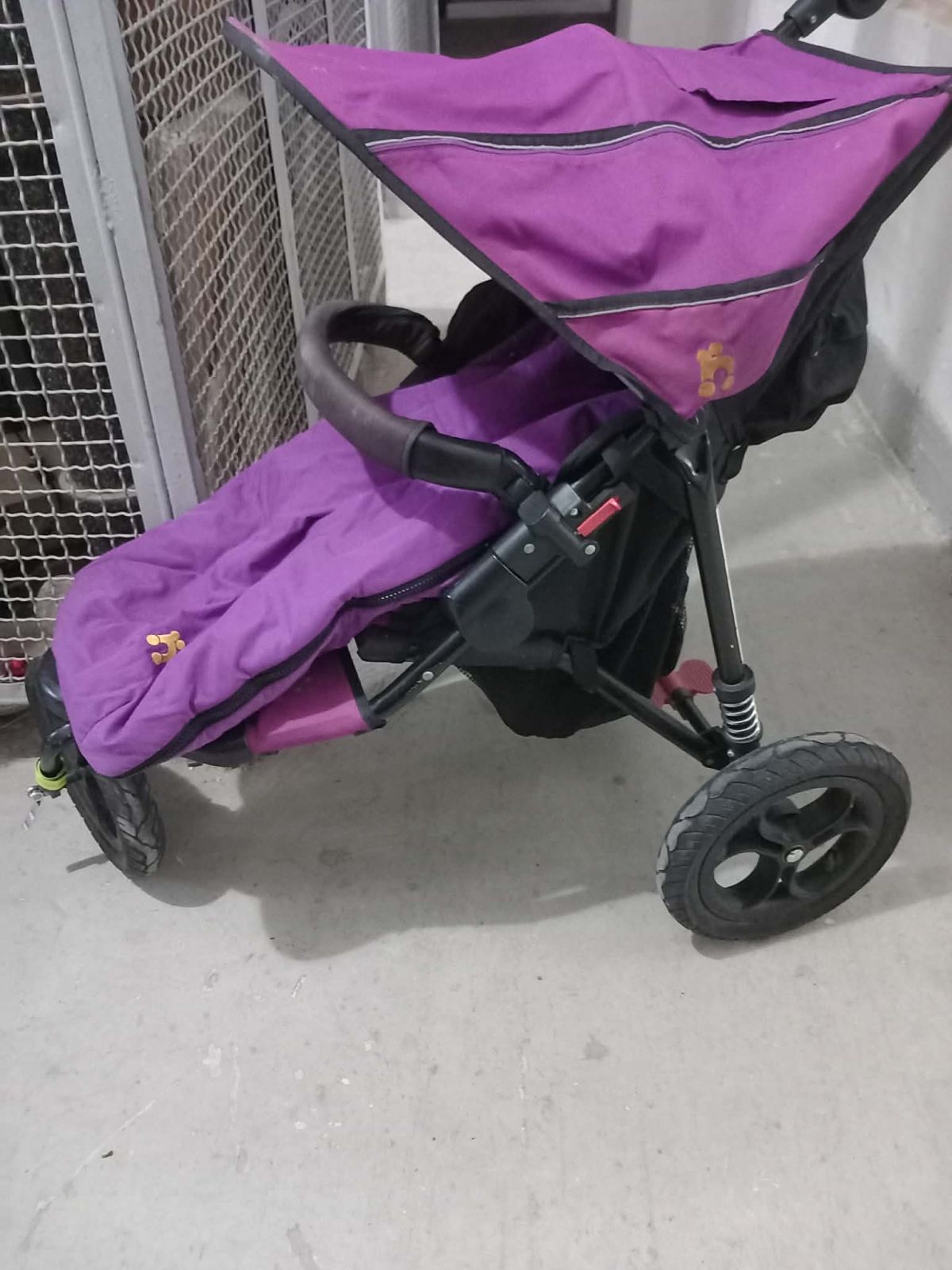Náš oblíbený kočárek. Nafukovací kola. Nefunguje brzda - podle mě oprava bude jednoduchá. Barva je fialová.