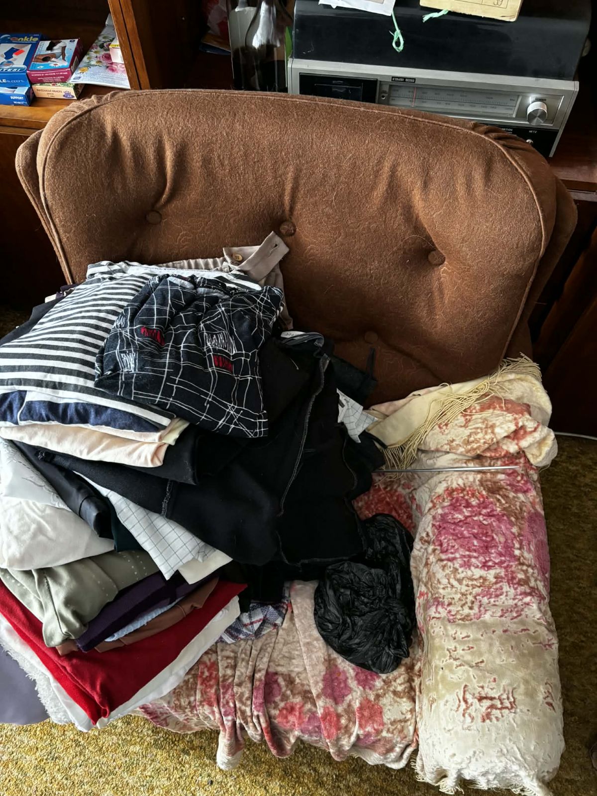 Daruji za odvoz obývací stěnu a sedací soupravu z 80. let. Křesla jsou obě dvě, ač je vyfocené jen jedno.
