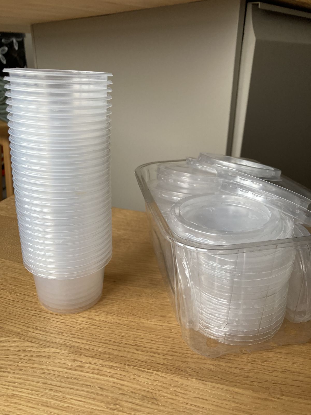 Daruji za odvoz 30 ks plastových kalíšků od dipu (80 ml) včetně víček. Hezky pevné, vhodné i do myčky.