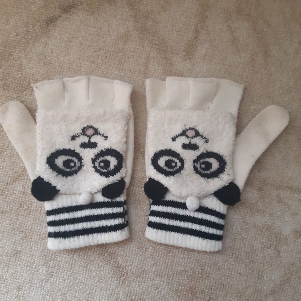 Daruji za odvoz dětské rukavice (tipuji velikost 7 podle mojí ruky) ve tvaru pandy, nošené. Jsou jednou zašívané, ale nejde to poznat pokud o tom nevíte. :)