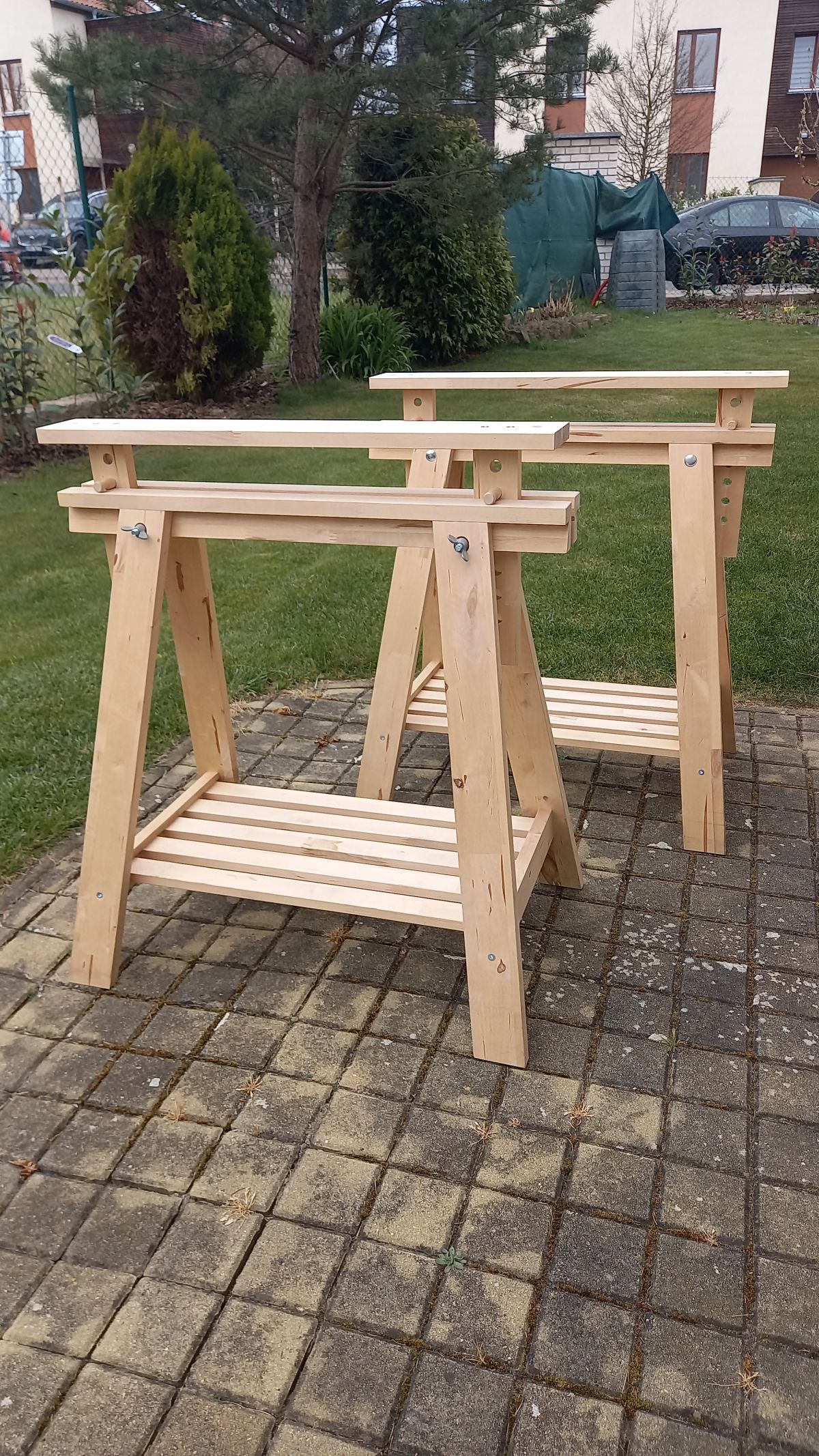 Daruji za odvoz dvě dřevěné podnože - pod desku na stůl nebo do dílny. Rozměry 70x45, výška nastavitelná od 70-90cm. Jesenice u Prahy