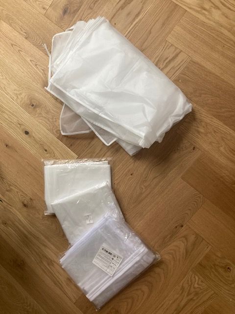 úplně nové, nepoužité, rozměry u všech zhruba 120 x 120, pasují na věšáky z Ikey.