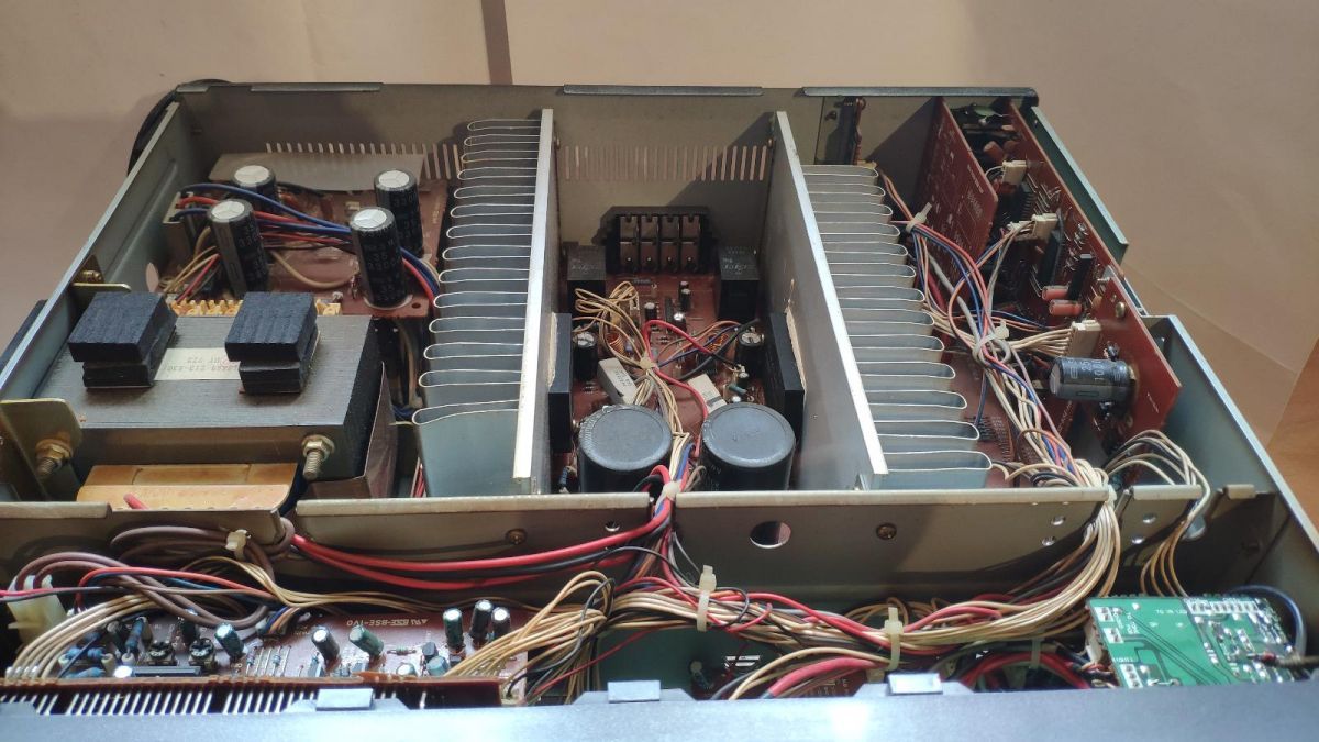 Daruji za odvoz zesilovač uvedeného typu. Je potřeba vyměnit konce, opravit desku plošných spojů, opravit desku ochran, vypálený plošňák (relé zkratované, což zničilo konce). Mě už to nebaví dávat do kupy a mám jiný..