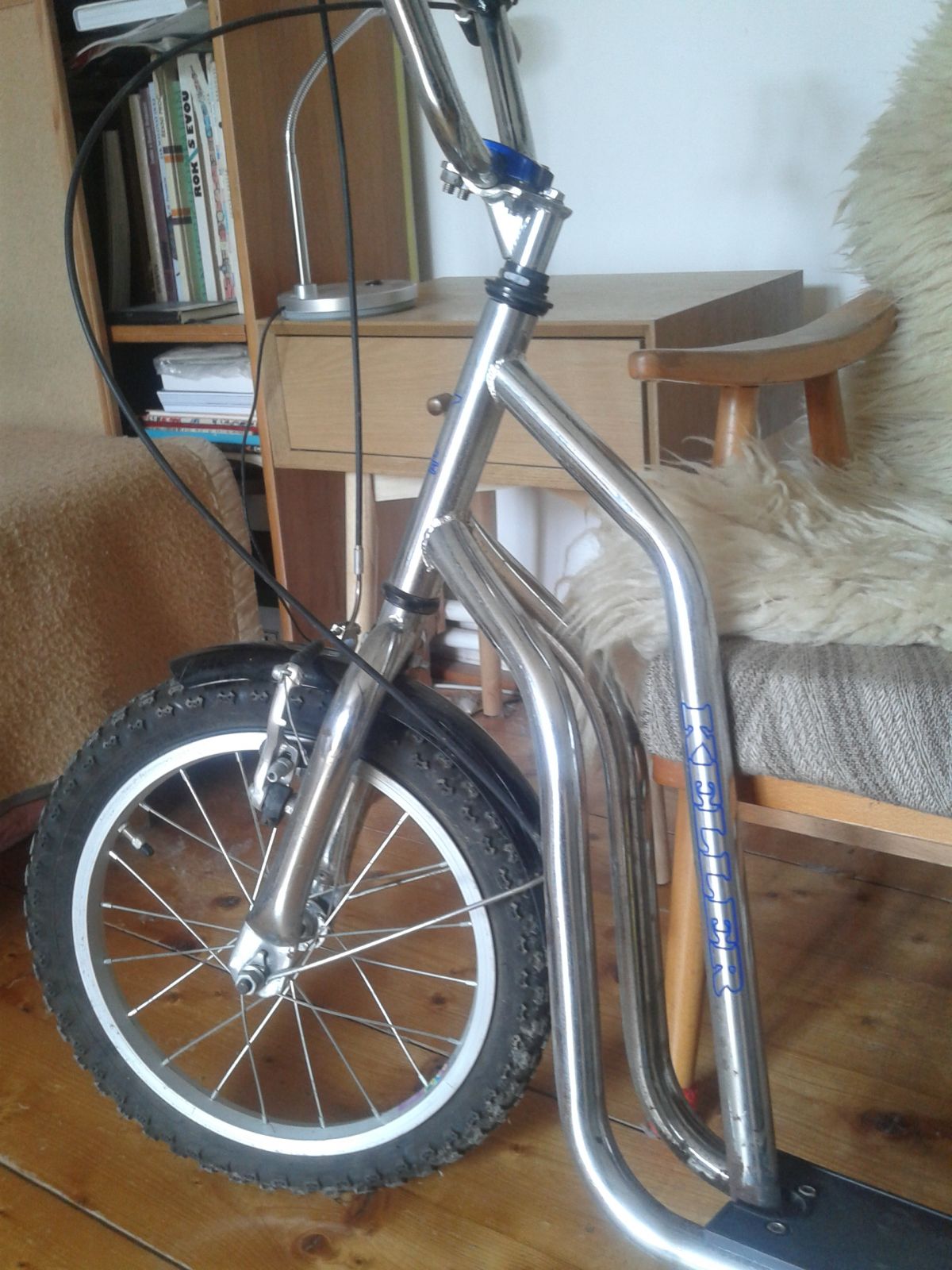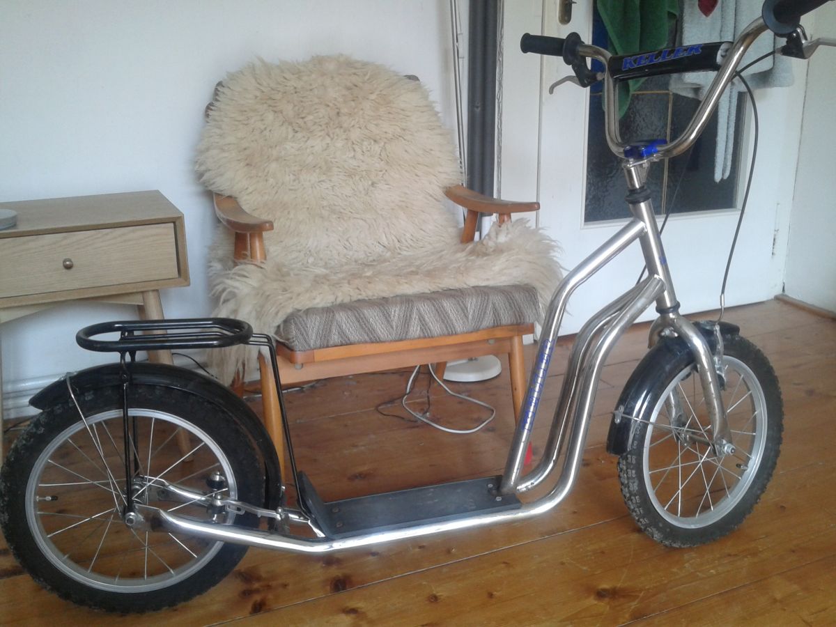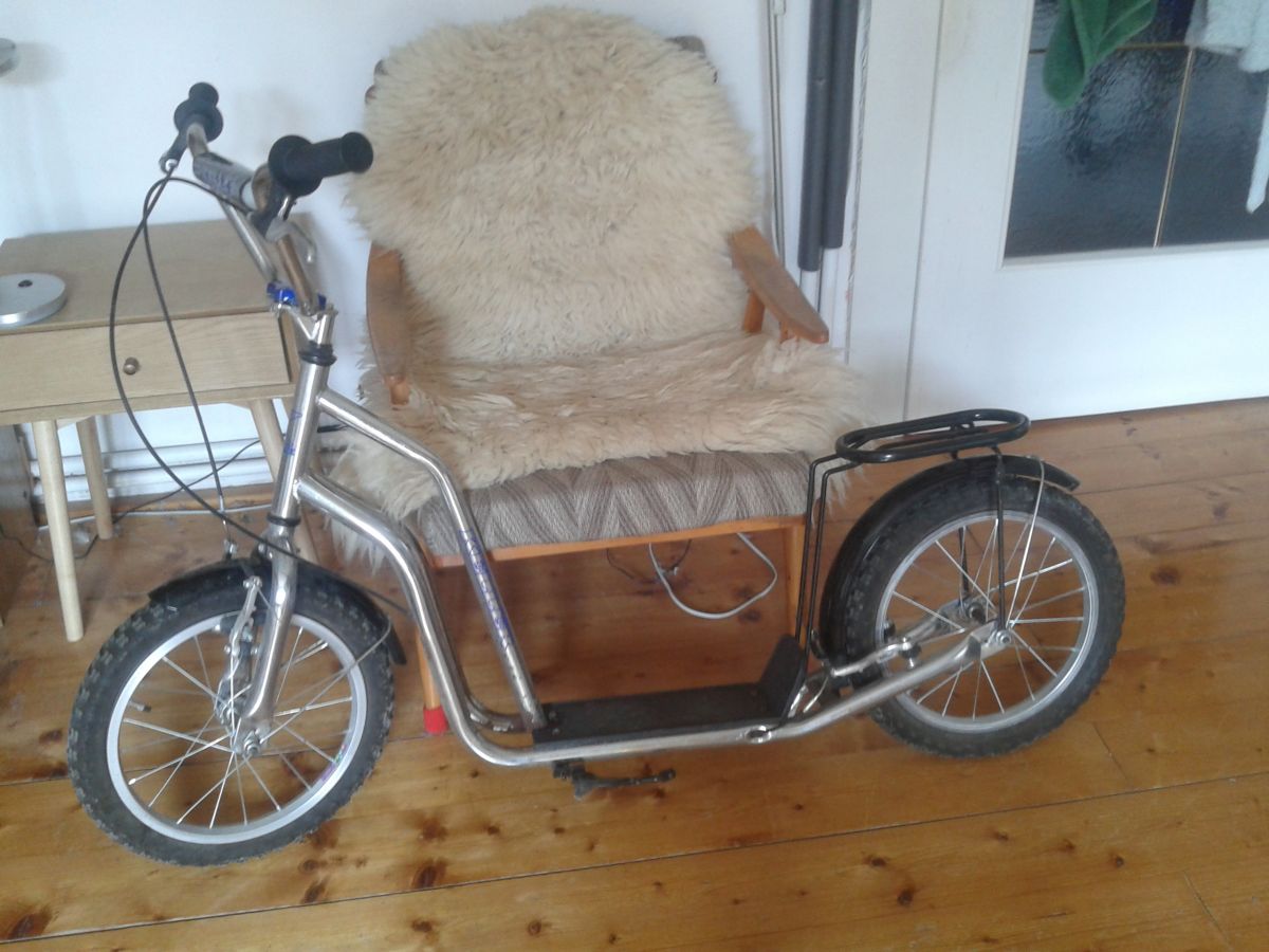 Daruji za odvoz starší koloběžku. Nalezena v garáži. Jsou vidět známky opotřebení, ale měla by být funkční. Přední brzda je v pořádku, zadní je potřeba opravit. Prázdné duše. Nedá se na ní přímo odjet :)