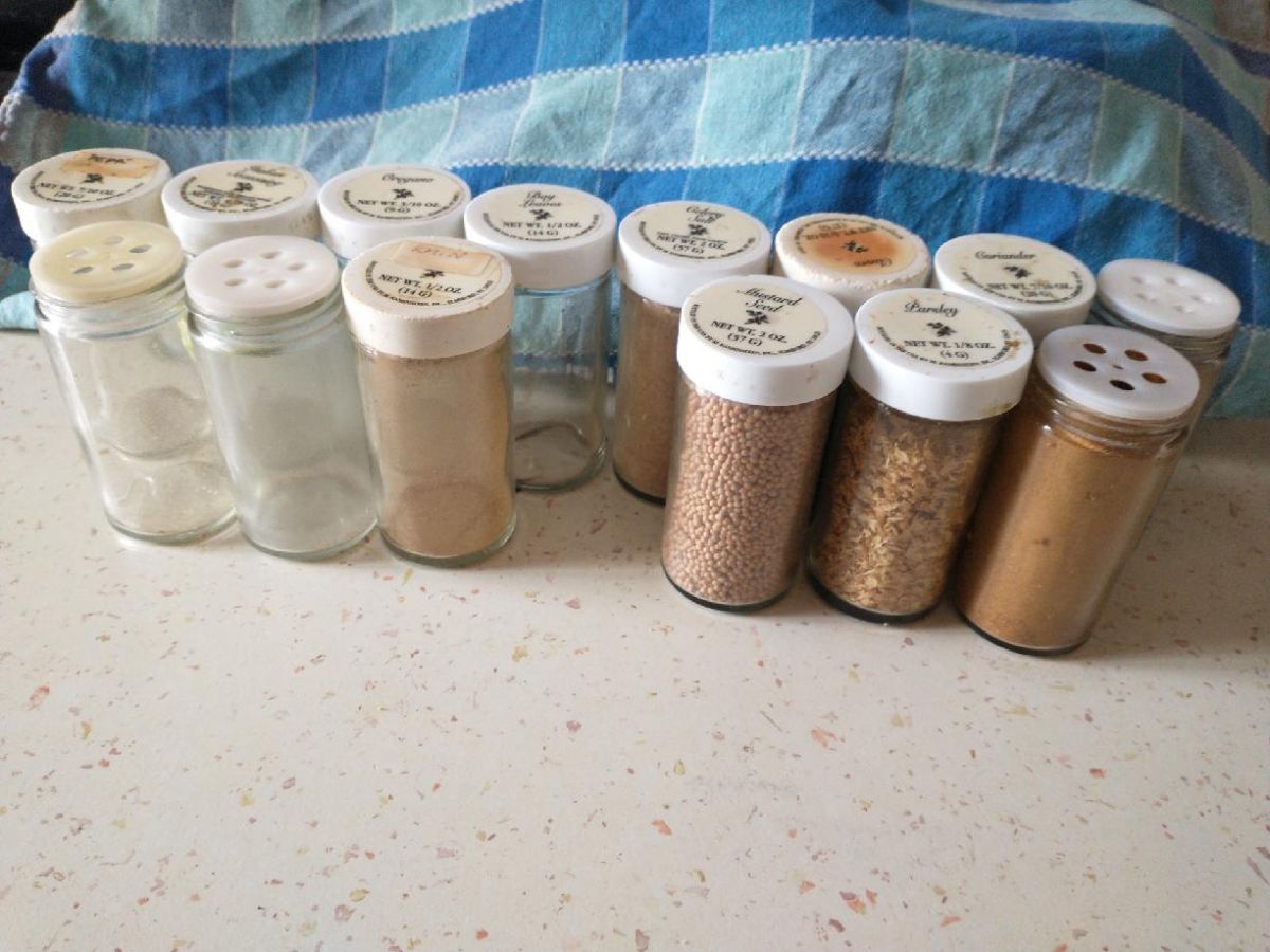 Skleněné kořenky s plastovým víčkem (některé bez). Nálezový stav, některé včetně obsahu (prošlé).