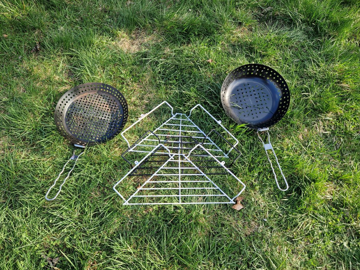 Daruji za odvoz grilovací náčiní. Pánvičky je potřeba ošetřit, protože byly dlouho v garáži a nejsou v nejlepším stavu. Mřížky jsou nové.