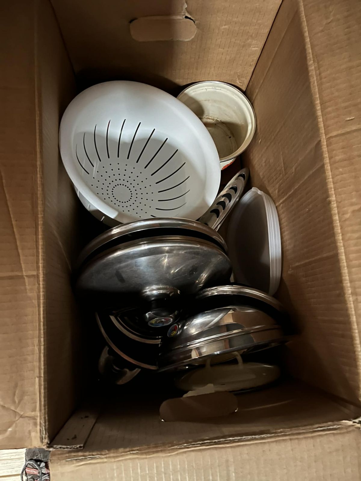 Daruji za odvoz krabici s nádobím (jsou tam různé hrnce, pánvičky atd.)
