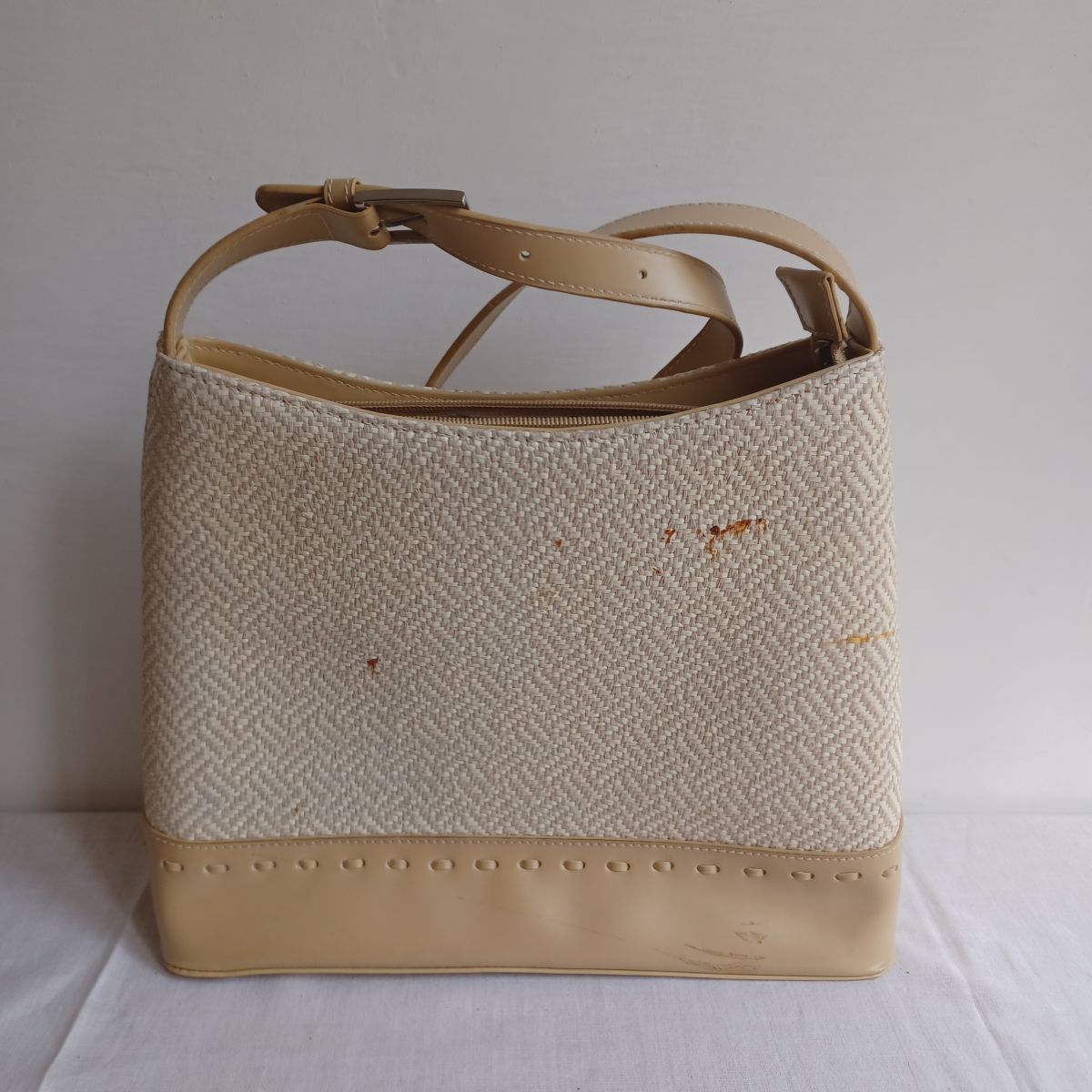 Daruji za odvoz kabelku, 30x25 cm, zachovalá, ale na zadní straně několik skvrn a trochu odřená ve spodní části. Všechny zipy funkční.