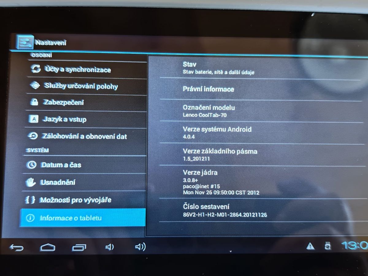 Je asi 7", má gumové ochranné pouzdro, Android 4.0.4