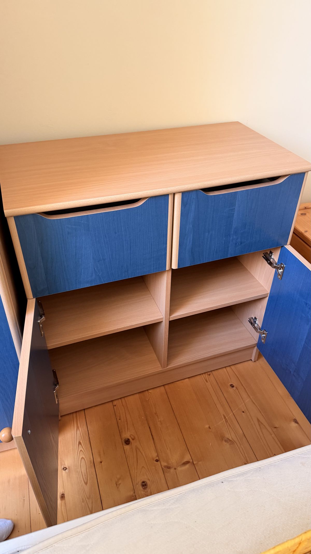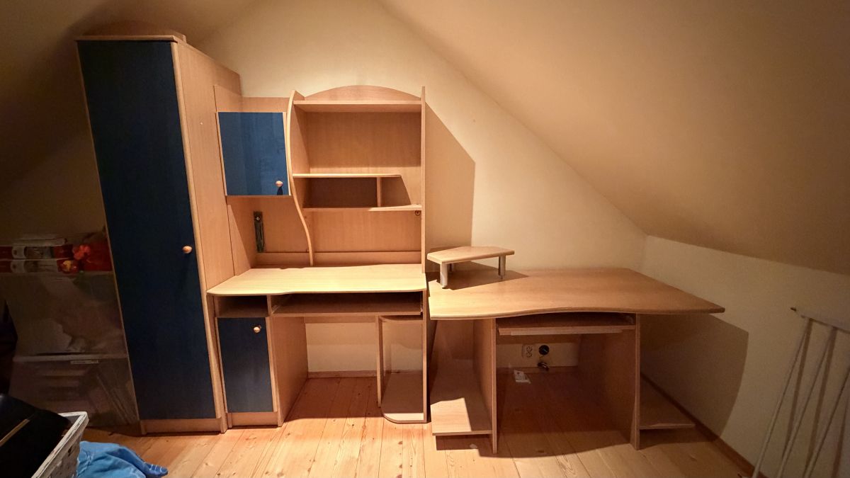 Daruji za odvoz nábytek do dětského pokoje. Dvě vysoké skříně, jedna policova, jedna na ramínka. Komoda, knihovna, psací stůl s policemi, případně stůl na pc, ale tento kus asi už v dnešní době nebude potřeba. Vše hezký stav na stěně psacího stolu je jedna díra a přilepená dekorace, která mi nejde odlepit. V případě zájmu zašlu rozměry a podrobné foto.