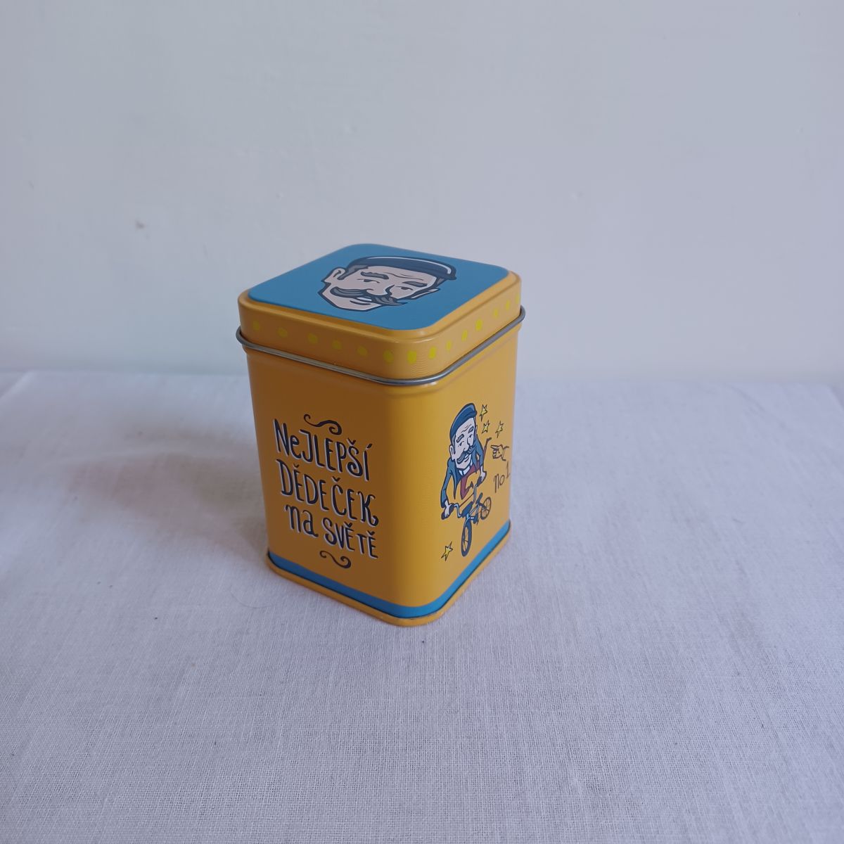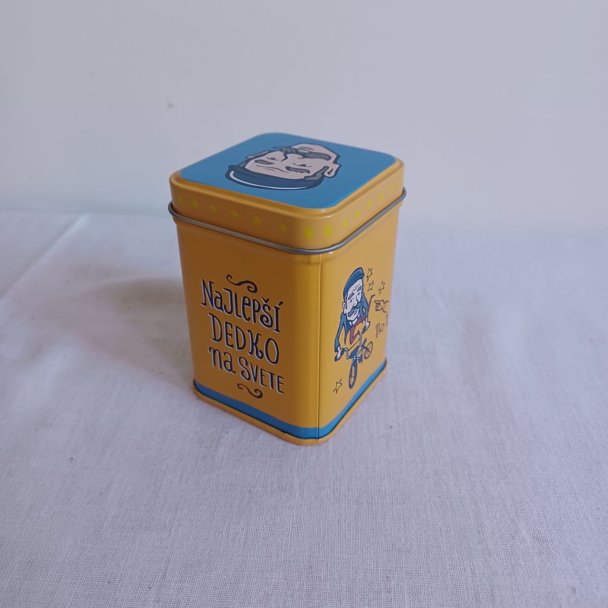 Daruji za odvoz malou prázdnou plechovku s nápisy 'nejlepší dědeček na světě' / 'najlepší dedko na svete'. Výška 8 cm.