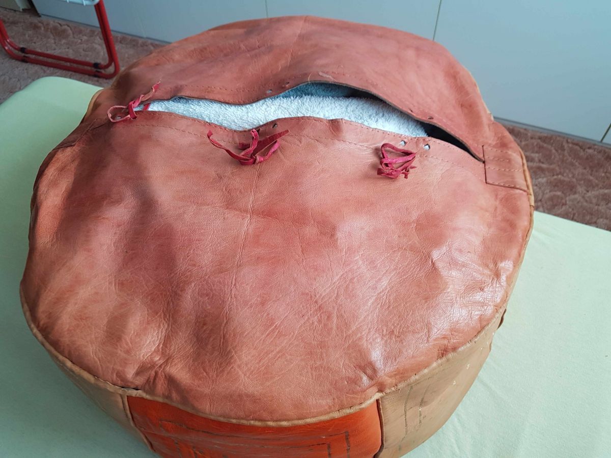 Daruji za odvoz originalni taburet z prave kuze dovezeny z alzirskeho trziste. Rozmery cca 50 x 22 cm