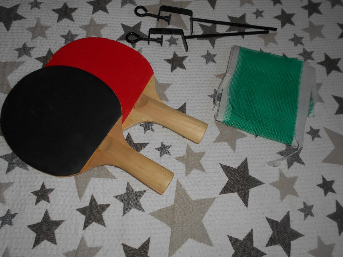 Sada na ping pong -síťka, kovové úchyty a 2 pálky