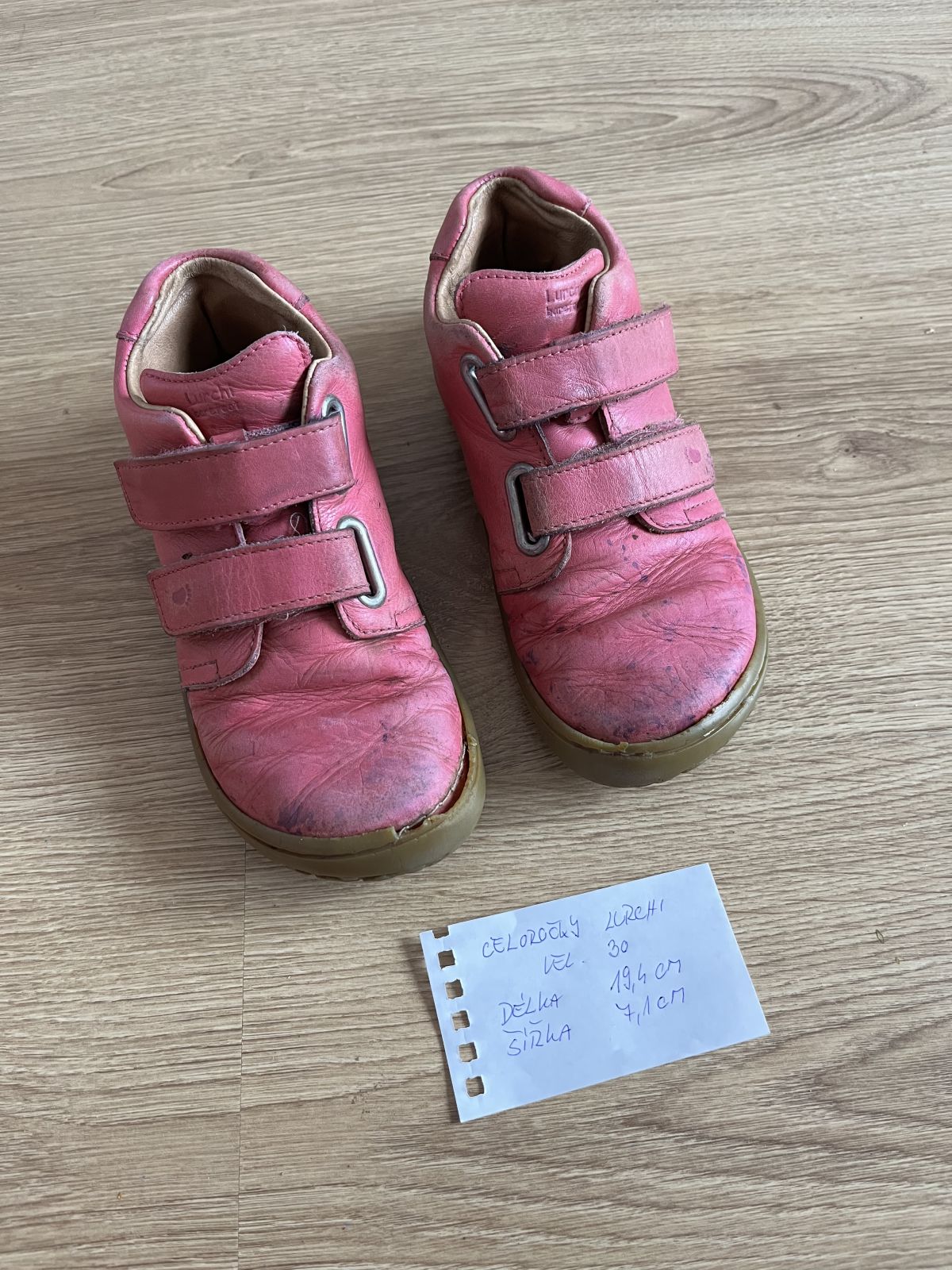 Daruji za odvoz dívčí kožené celoročky vel. 30. Stelky jsou obe,jen jedna je přilepená na pevno do boty, shrnovala se. Vady a rozměry viz. foto.