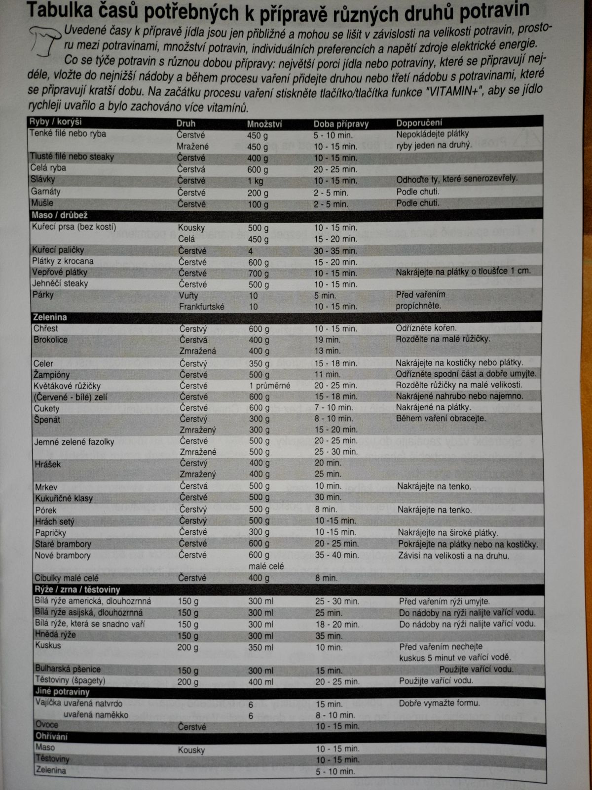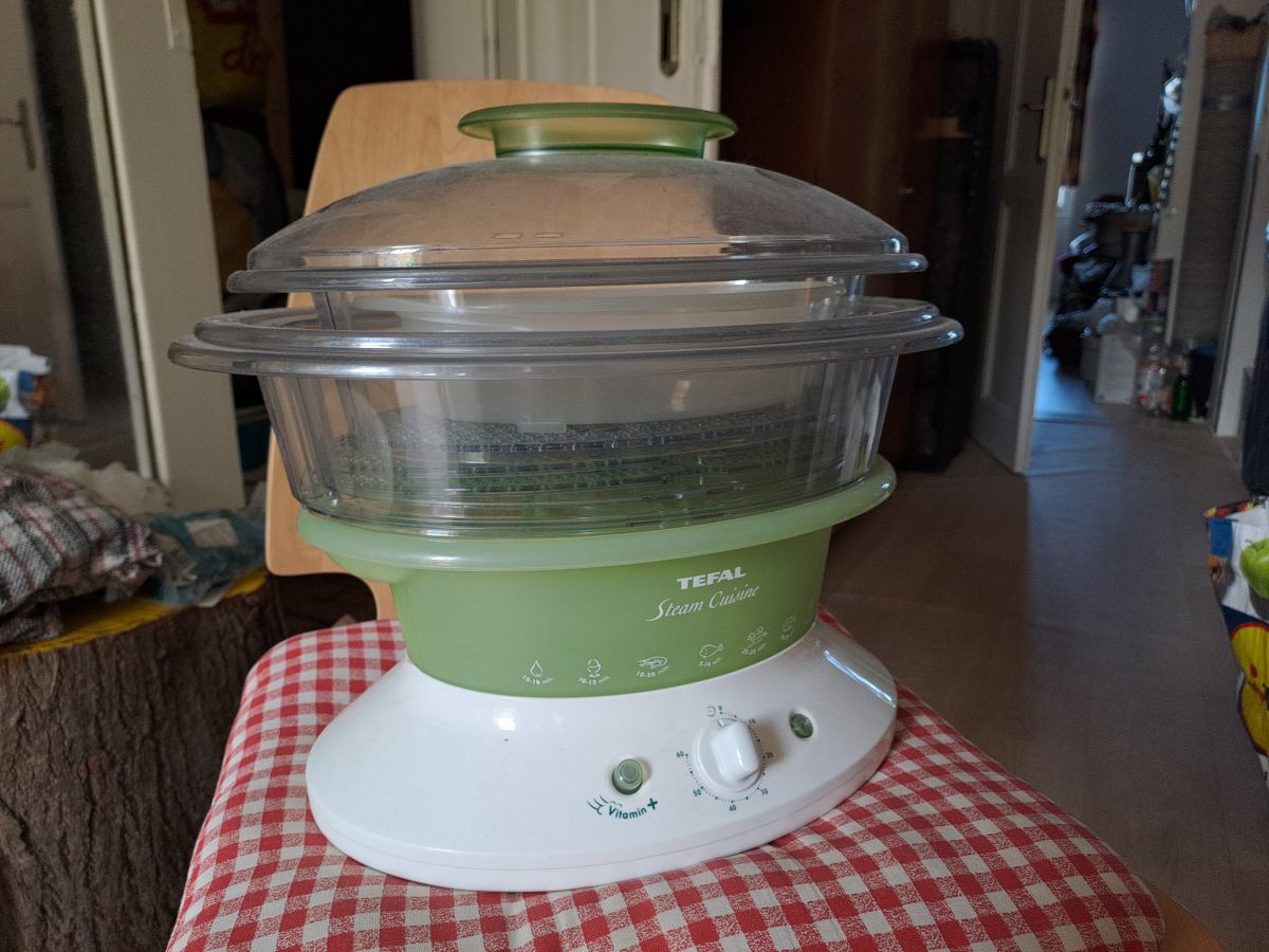 Daruji parní hrnec / rýžovar pro přípravu pokrmů na páře. Umí připravit ryby / korýši, maso / drůbež, zeleninu, rýži / zrna / těstoviny, vajíčka, ovoce. Viz obrázek.