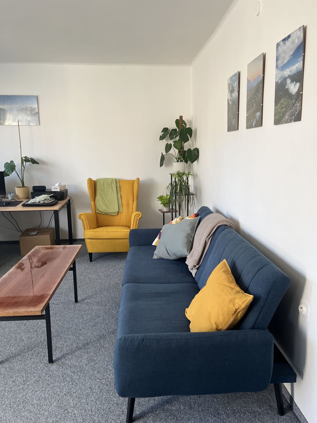 Modrý rozkládací gauč