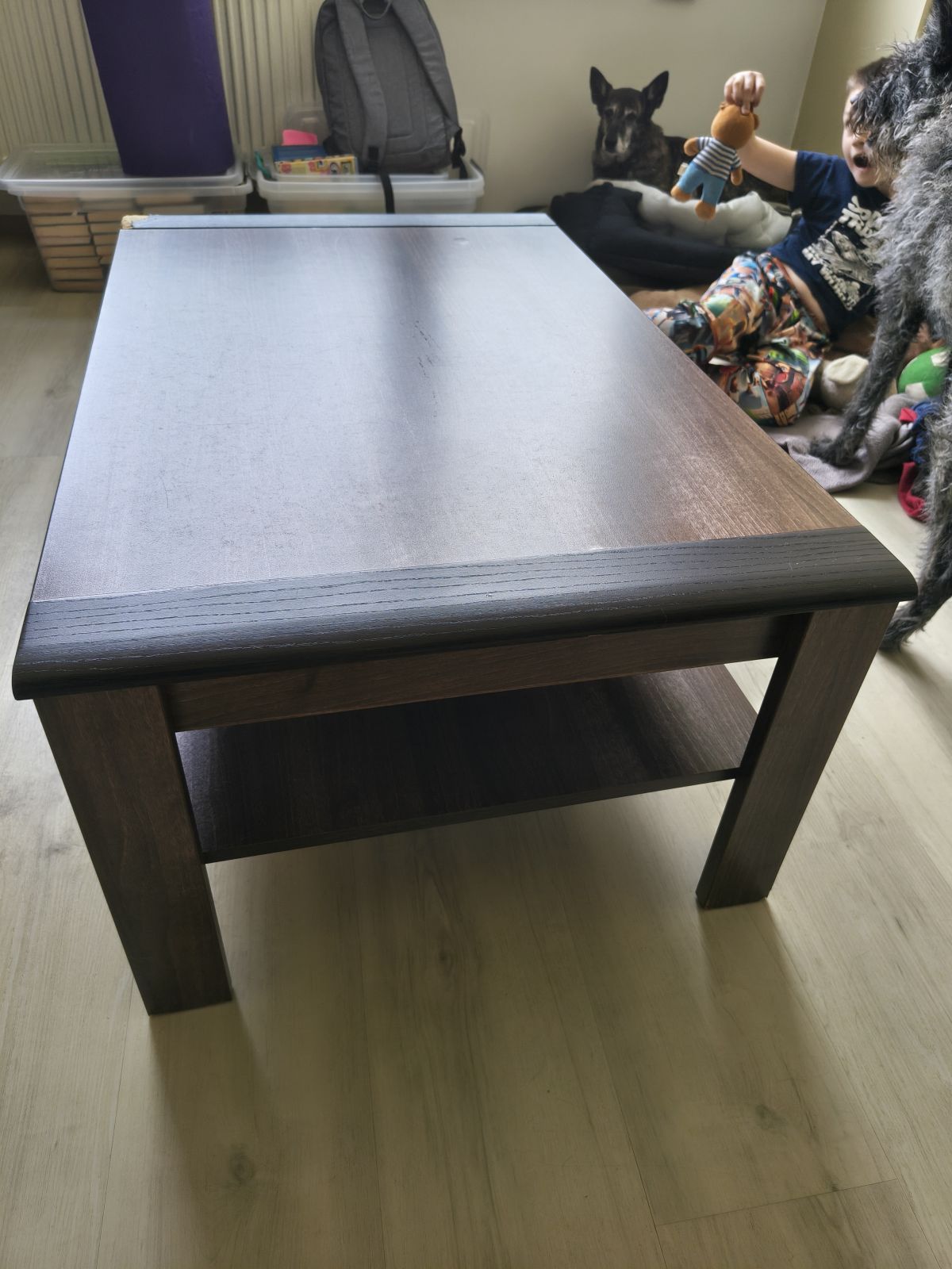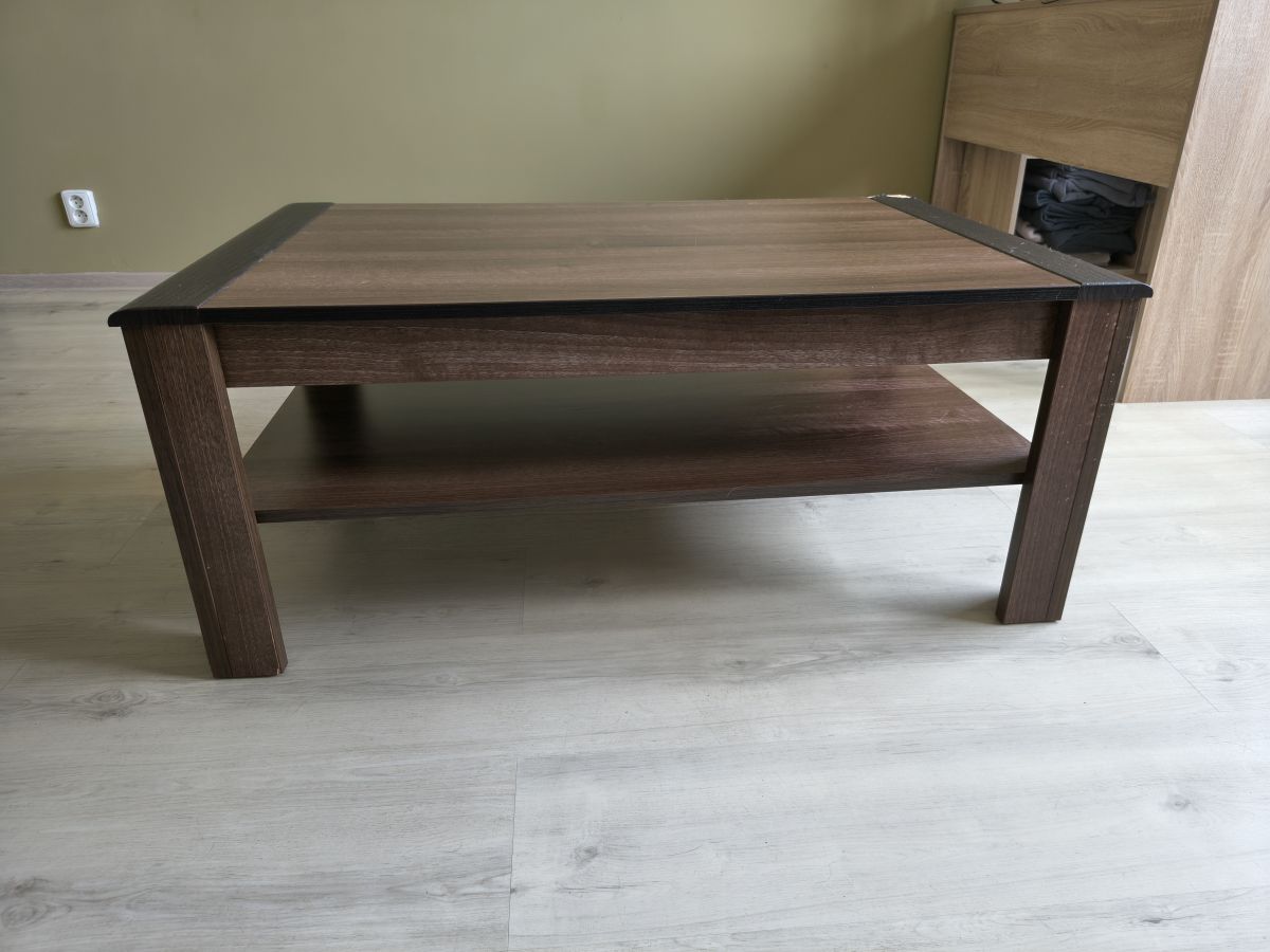 Konferenční stolek, jeden roh okousaný od psa. 107x67 cm, výška 44 cm.