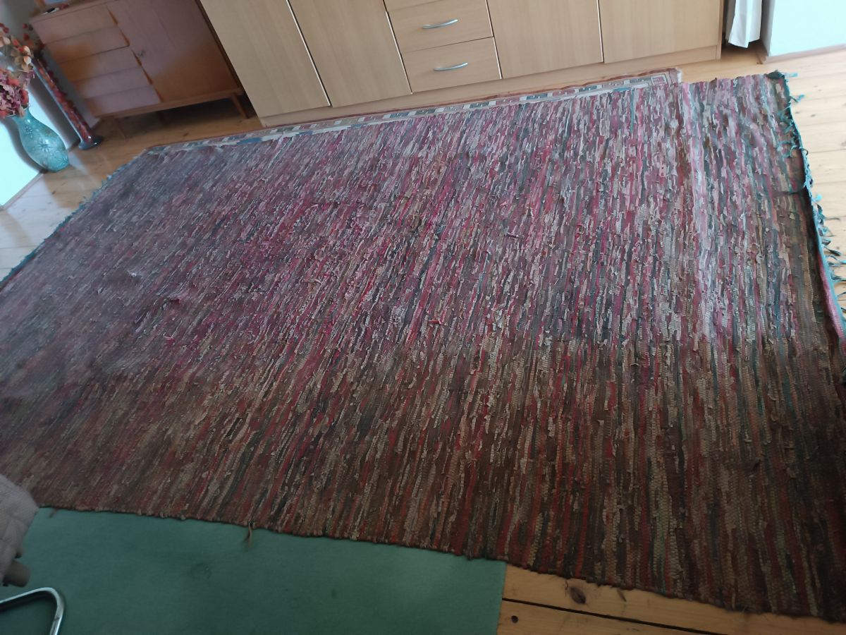 Ručně tkaný kožený koberec z Indie, rozměry 330 x 200 cm.