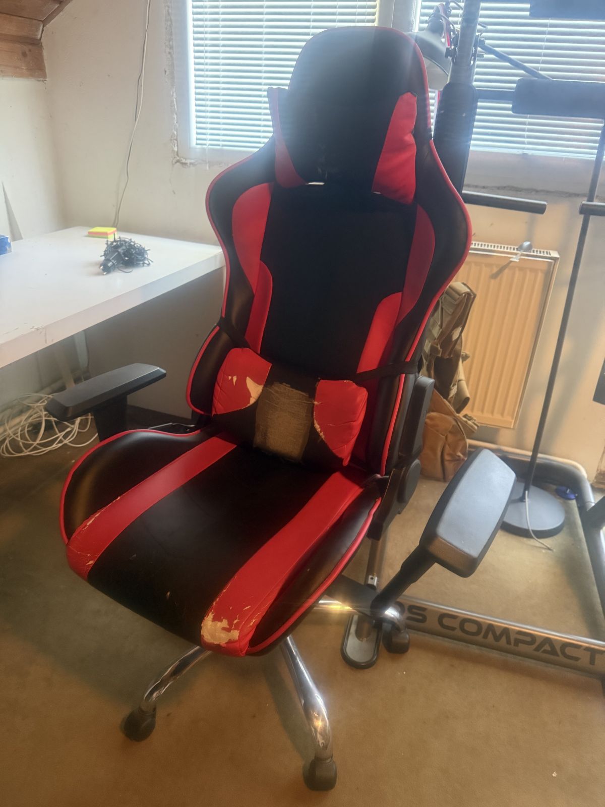 Daruji za odvoz starou herní židli, vzhled nic moc ale věřím že někomu poslouží, sedět se na ni dá