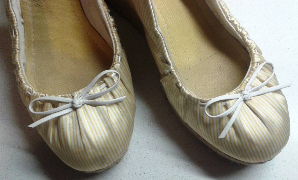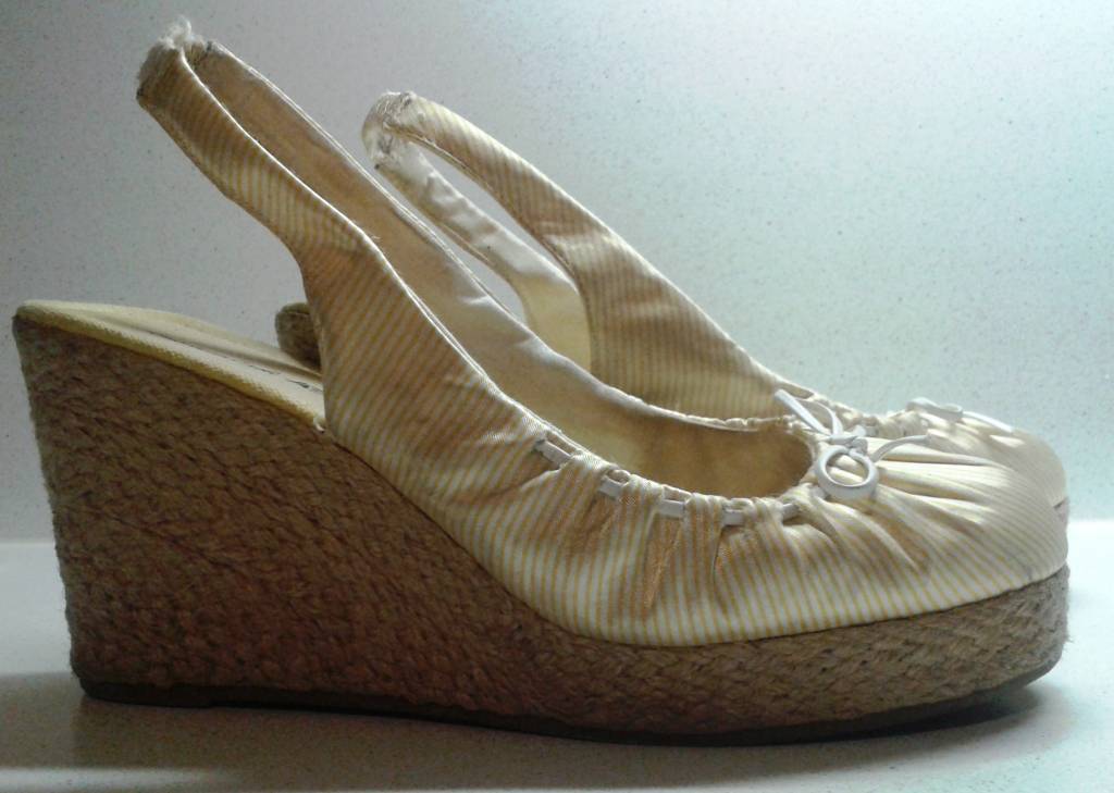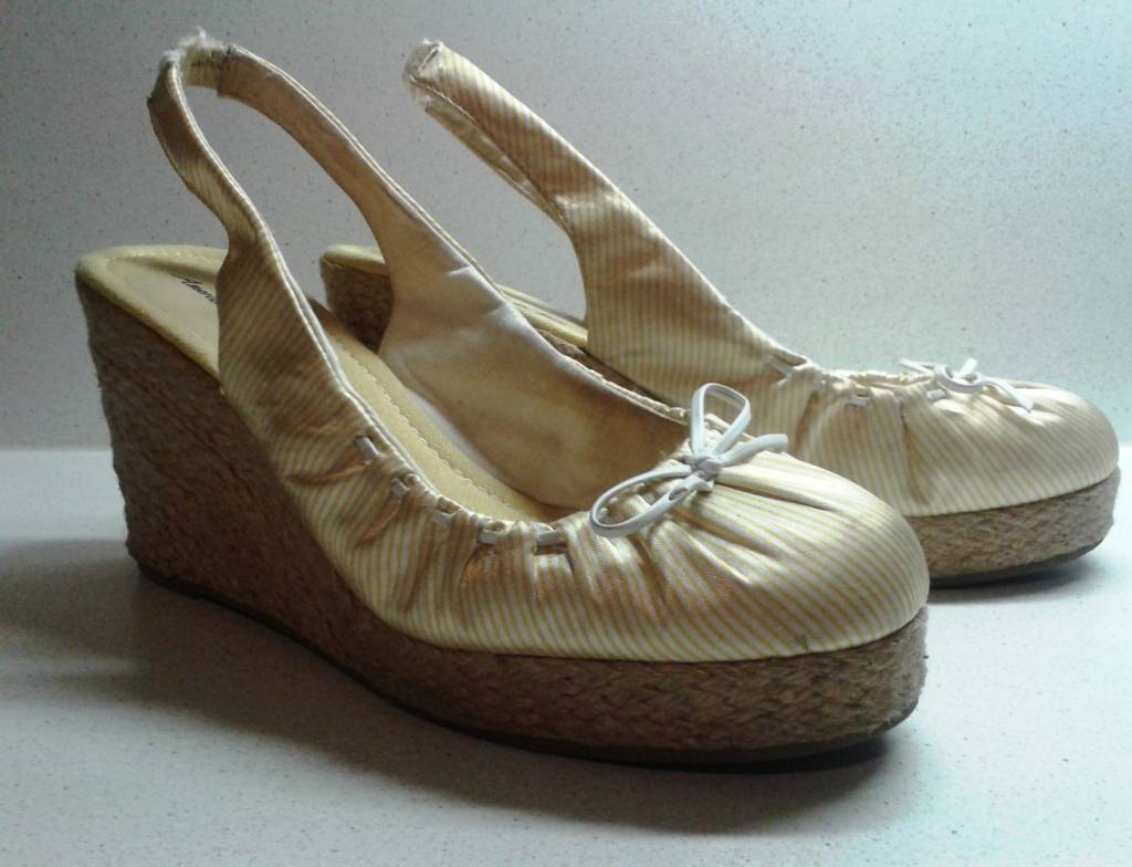 Daruji opánky na klínku - vel. 39 (koupené v Chicagu :)) - bílo-žluté proužky