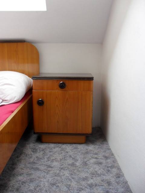 Daruji komplet ložnici z cca 60. let, dvoulůžko (bez roštu a matrace), 2x noční stolek, dvoudílná skříň, trojdílná skříň, zrcadlo-toaletka, možné vzít jen část.