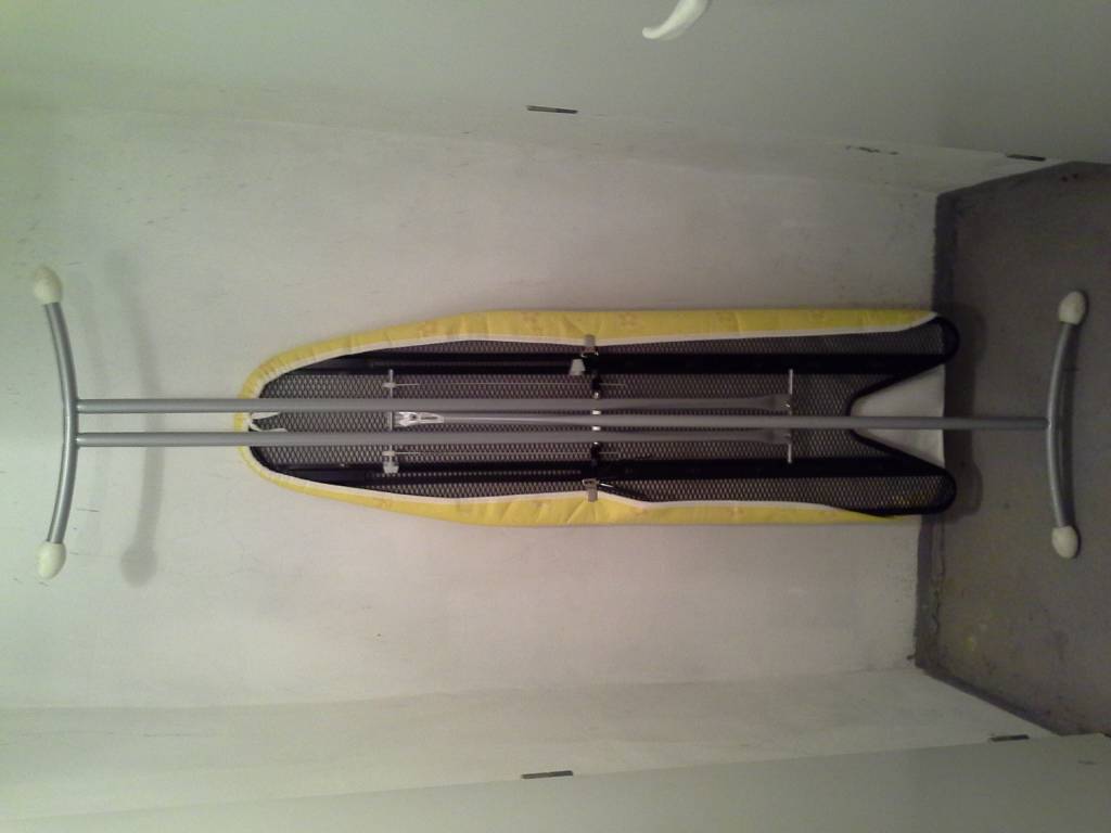 Velké prodyšné z IKEA, pro napař.žehličku, nový potah. Plastový jezdec držící nohu je ulomený - neumím to spravit.
