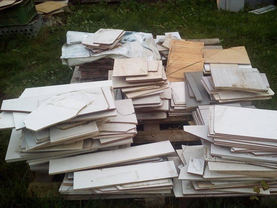 Nabízíme větší množství obkladaček světlé barvy,převažují různé odstíny a struktury bílé,jen pár kusů tmavých.Každá je bohužel nějak naštípnutá nebo odlomená,ale dají se odříznout a použít nebo na mozaiku.Vyzvednutí Brno-Komárov.