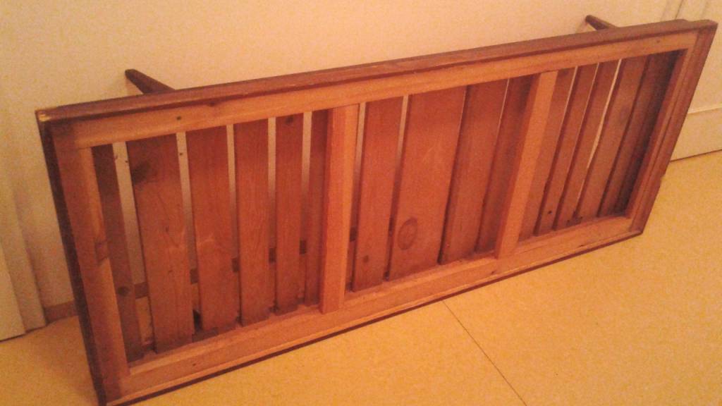 Stará dřevěná válenda v dobrém stavu. Je potřeba dopoupit jen sololit (nebo jinou desku) Jako podložku pod matrace. Rozměry 83x194 cm. Matrace není součástí.