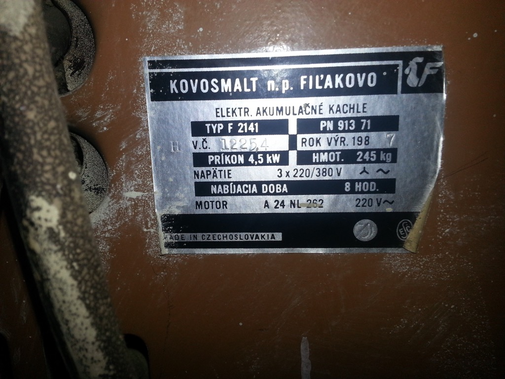 užívané pro vytápění bytu 3+1. Napájení – 3x220/380V, příkon 4,5kW –