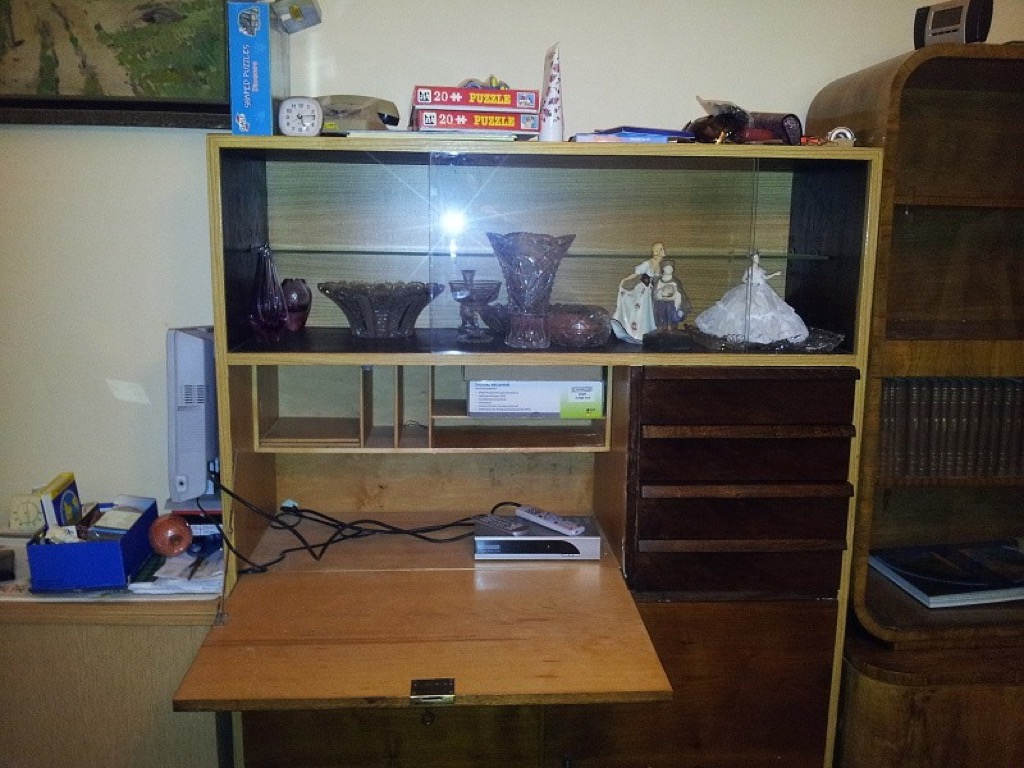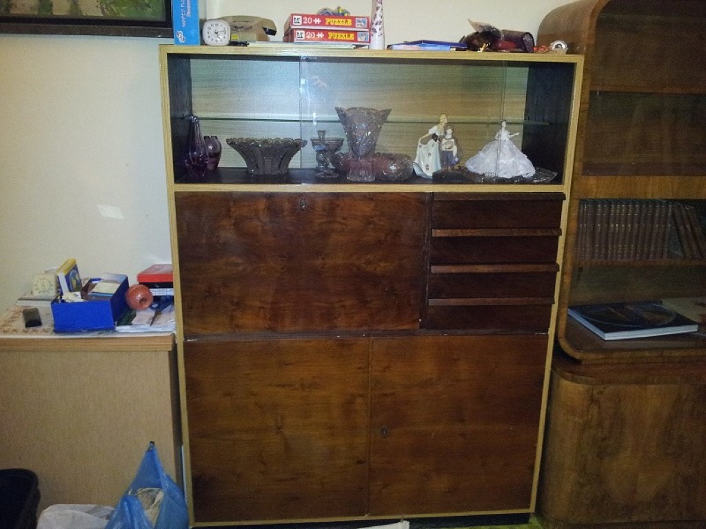 Kredenc/sekretář se šuplíkama a vitrínou. Rozměry: 120x160x40 (šxvxh)