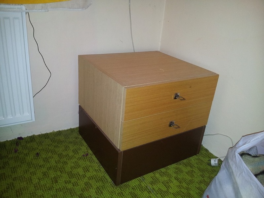 Šuplíková skříňka s podstavcem. Podstavec se dá oddělat. Rozměry: 50x47x45 (šxhxv).