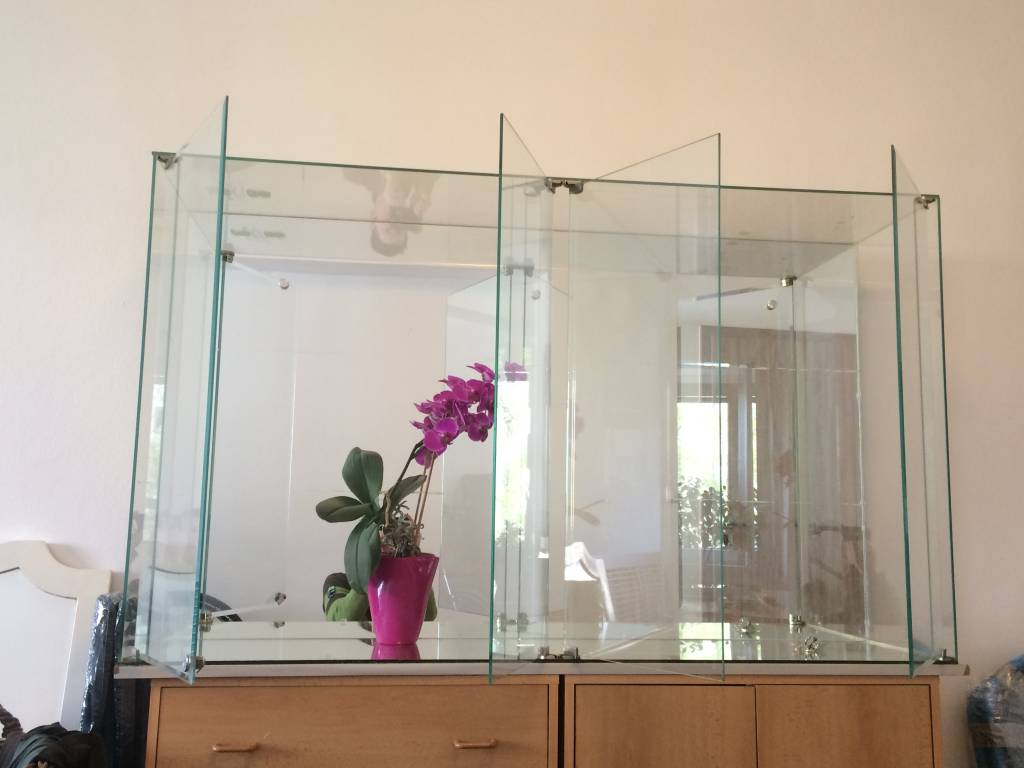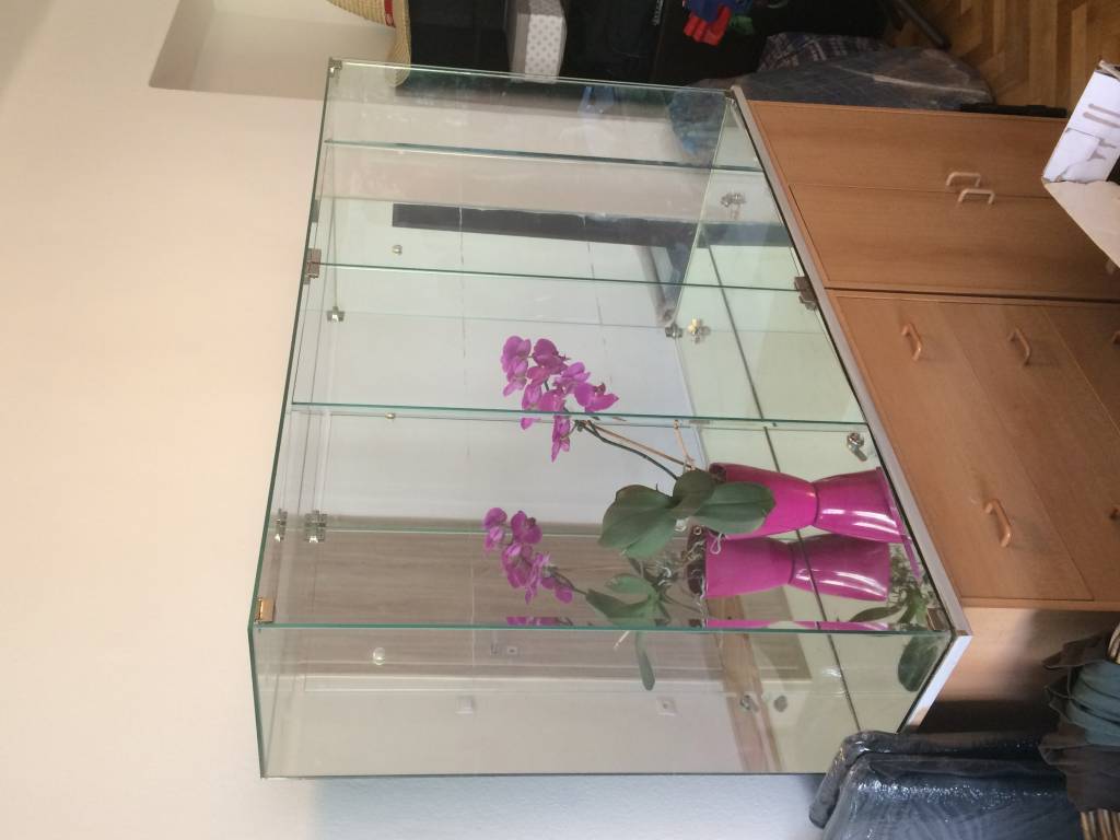Nabízím skleněnou skříň za odnos. Původně sloužila jako vitrína v obchodě. My v ní přisvěcovali bonsajím. Dala by se předělat i na terárko případně. Zadní stěna a dno zrcadlo. Na dně škrábance. Rozměry 150 x 90 x 35. K vyzvednutí v Praze 10 Vršovicích.