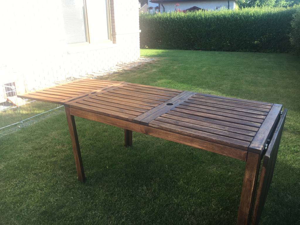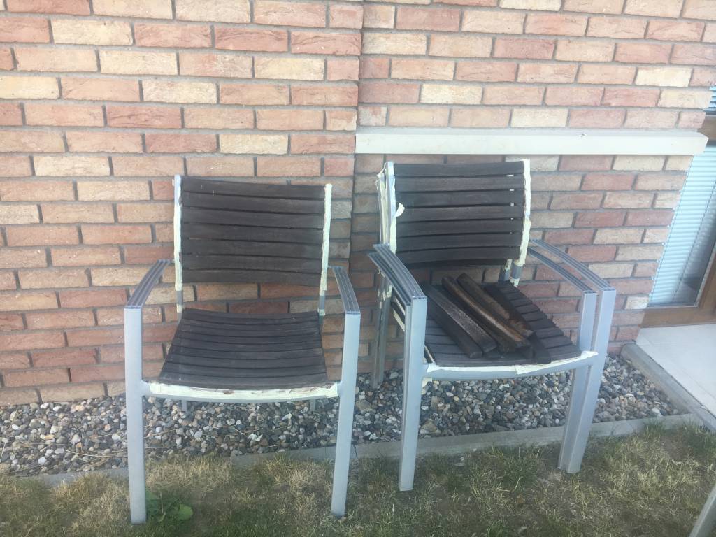 Daruji dřevěný zahradní stůl a čtyři židle.