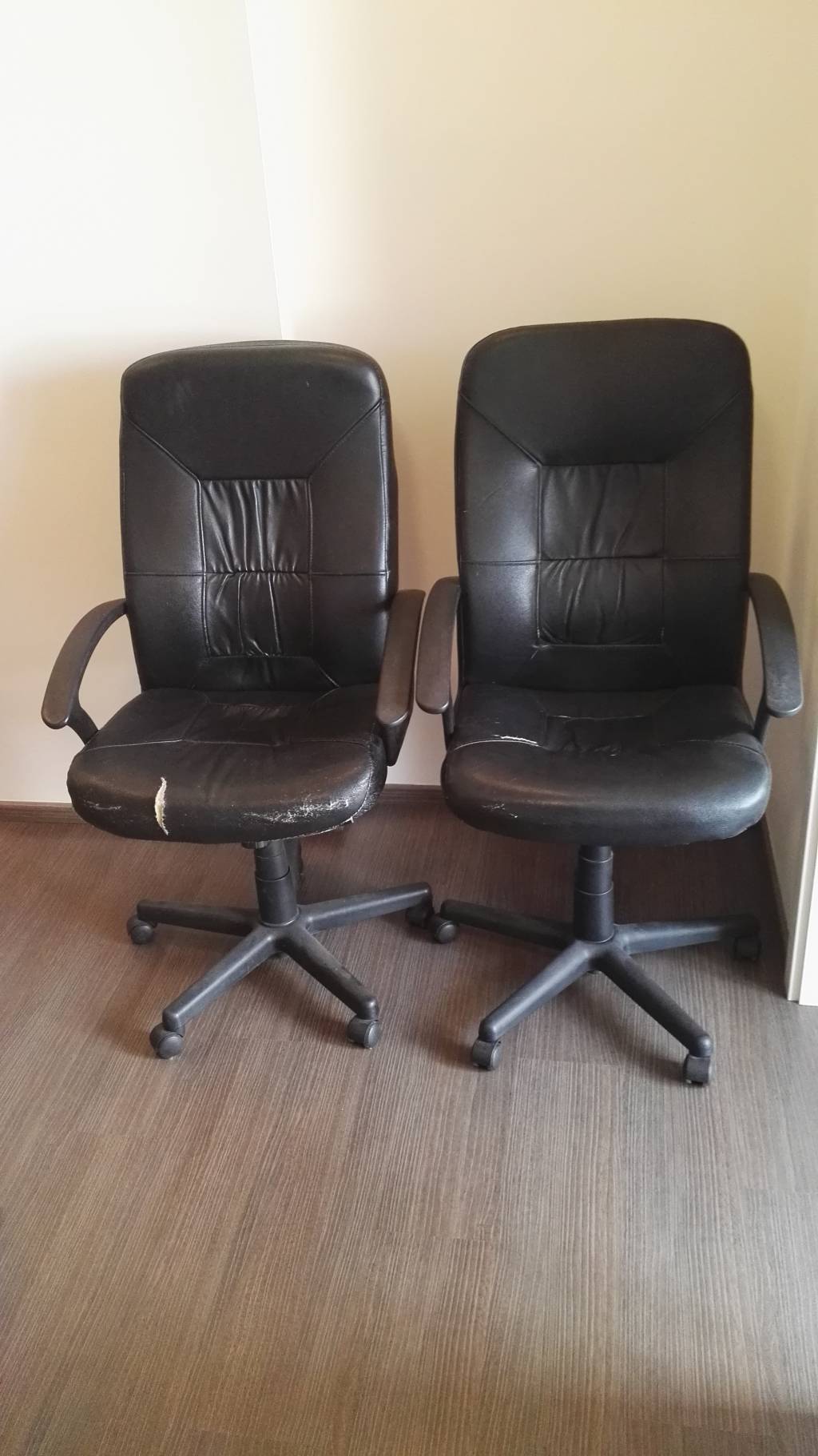 Daruji dvě starší kancelářské židle. K dispozici na Bělohorské ulici v Praze na Břevnově.