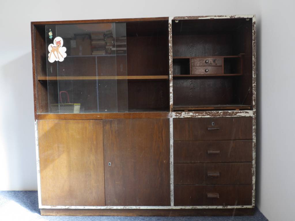 daruji několik kusů retro nábytku, kredenc (lehce poškozená, ale dá se opravit), peřiňák, skříňky, konferenční stolek (šuplíky komplet, jen nejsou zatím vyklizené, horní deska snímatelná)