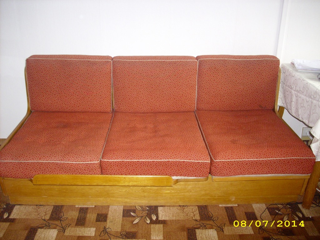 Daruji starý červeno-hnědý gauč (viz foto). Je částečně rozkládací. Jsou na něm skvrny. Pouze osobní odběr - Praha 11. Spěchá.