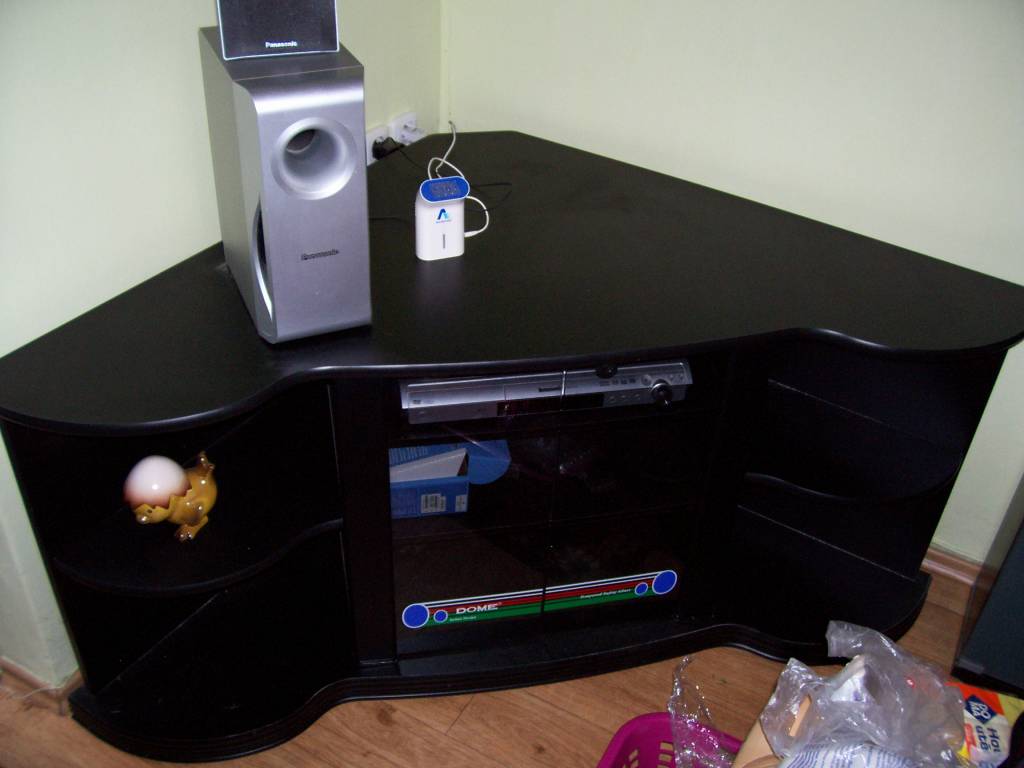 Věnuji černou rohovou skříňku s prosklenými dvířky uprostřed za odvoz z Tlučné u Plzně. Rozměry stran 100 cm, přední hrana 150 cm, výška 70 cm. Uprostřed 3 patra, na stranách dvě úložná místa.