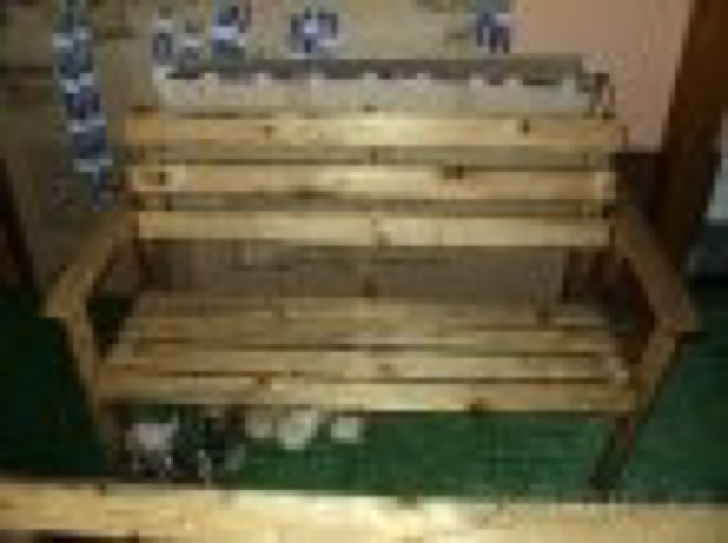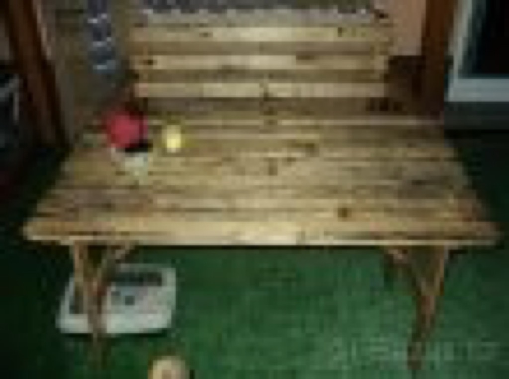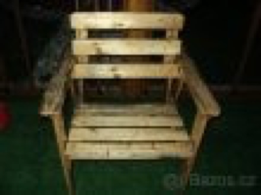 Sada zahradního nábytku, stůl 120 x 70 X 70 cm, lavice 120 x 60, 2 křesla 60 x 60. Lakované smrkové dřevo, lavici bude vhodné zpevnit. Vhodné např. na chalupu.