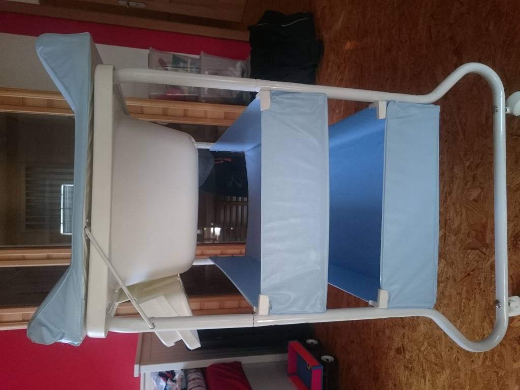 Daruji přebalovací, který jsem získala zde. Má potrhany potah u pultu, ale to jsme řešili dekou a na to přebalovací papírovou podložkou. V pultu je vanička, která se dá vyndat. Pult je na kolečkách, ta se dají i zaaretovat, aby se pult nehybal. Věřím, ještě poslouží nenáročné mamince, nebo k babičkam, jako nám .