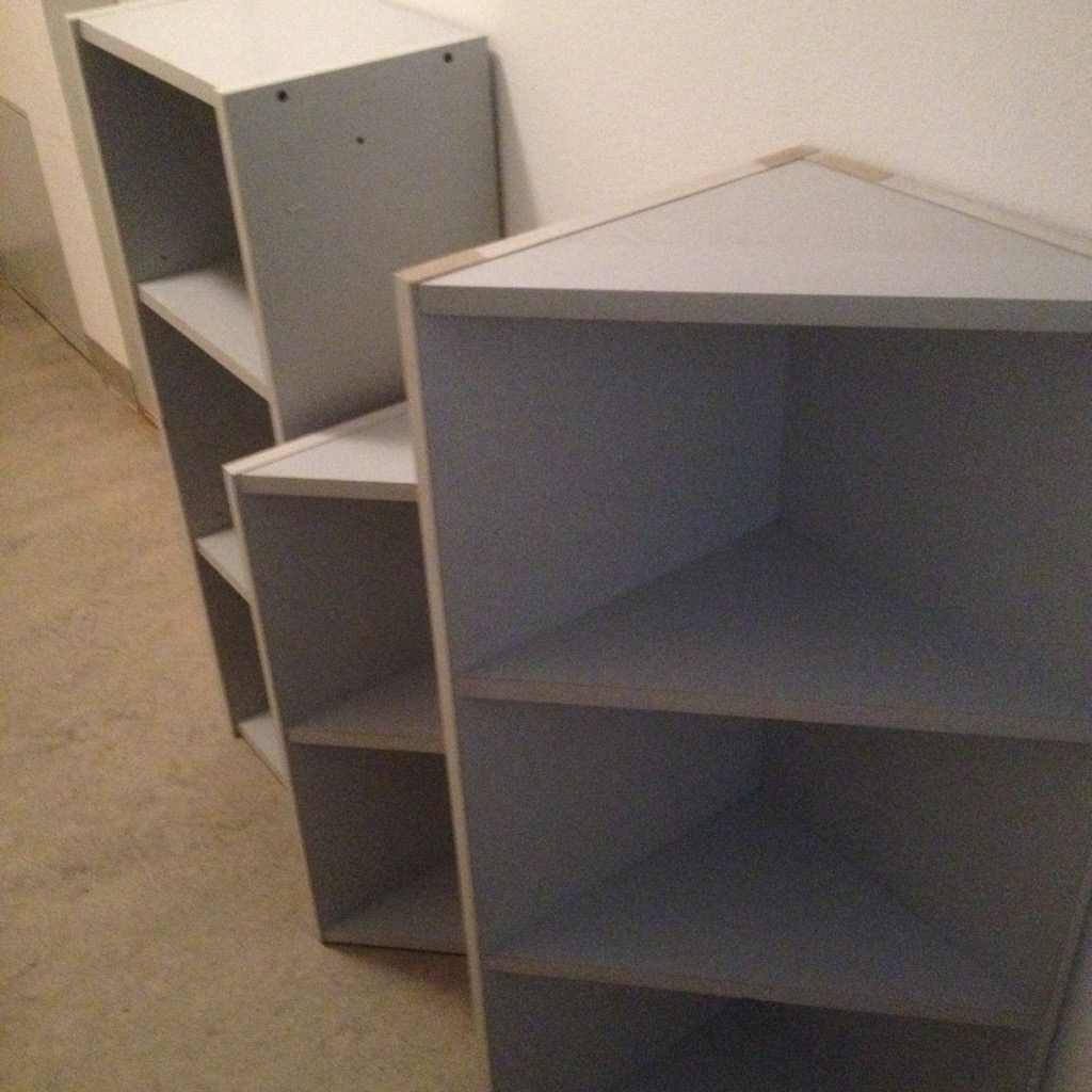 skříně jsou rozmontované na jednotlivé stěny a připravené pro odvoz