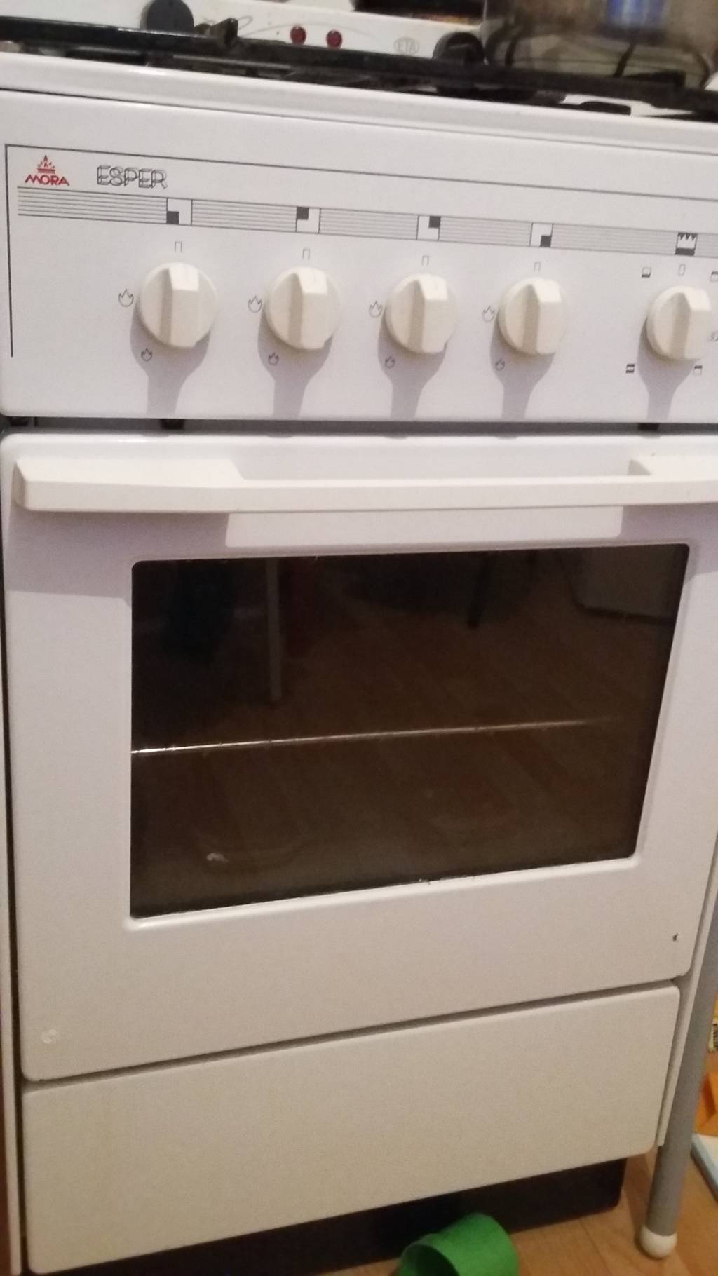 Kombinovaný sporák Mora s čtyřmi plynovými hořáky a elektrickou troubou. Funkční, bez problémů.